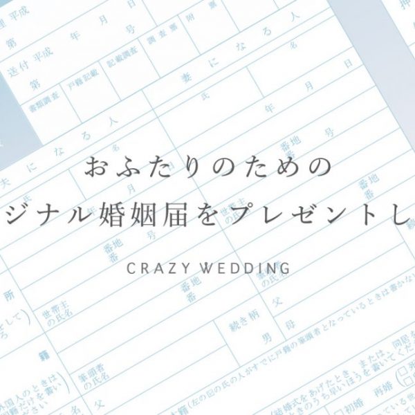 CRAZY WEDDINGが、おふたりのための婚姻届をプレゼントします