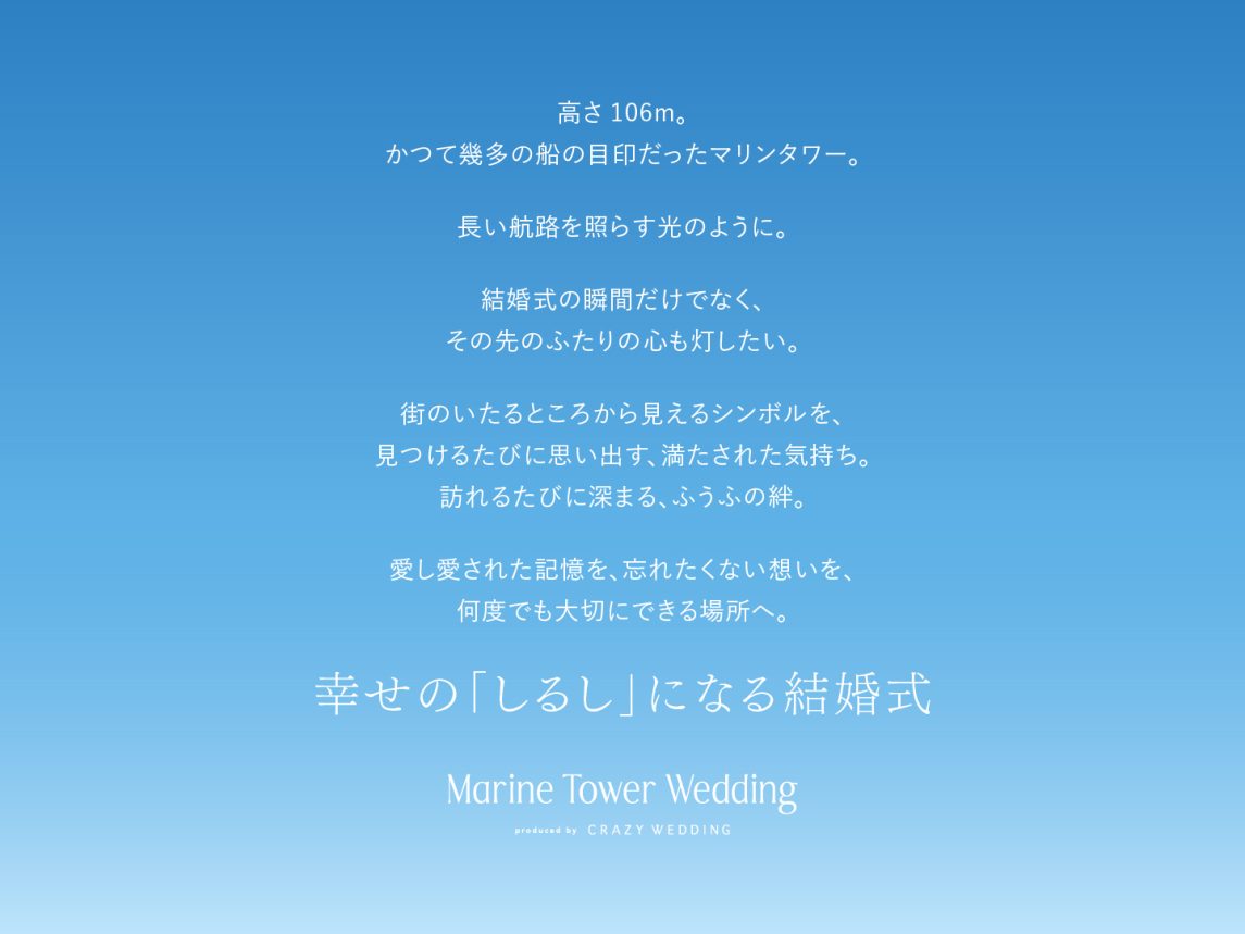「MARINE TOWER WEDDING」では、結婚式の一瞬の幸せで終わらせず、人生の中で大切なものに何度でも立ち返れる拠点を目指しています。