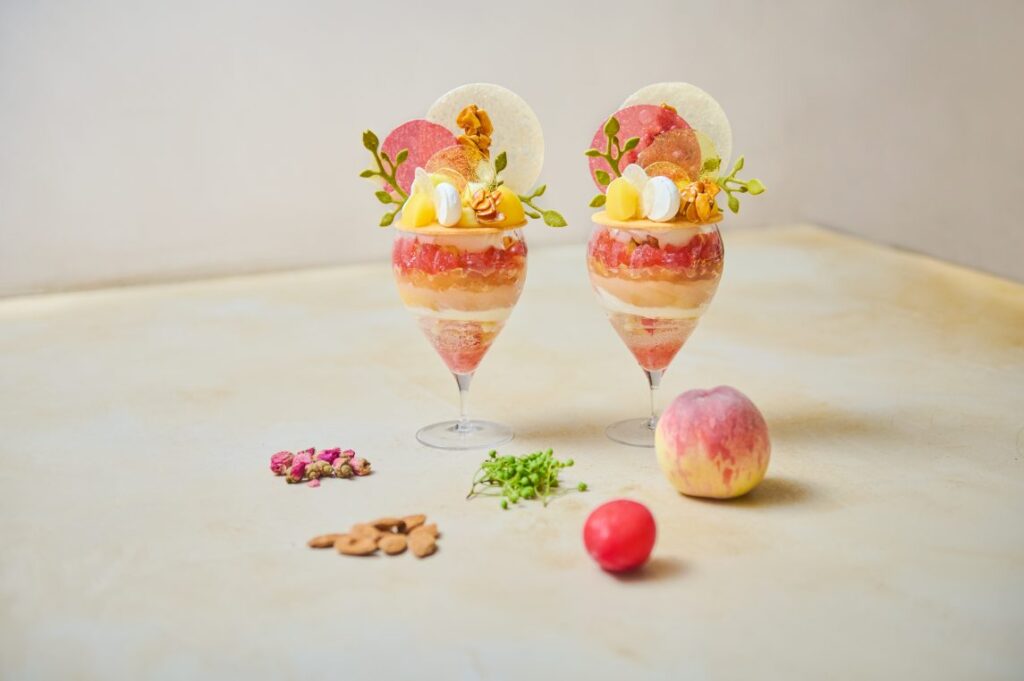 クラシックな組み合わせから大胆で新鮮な食材との組み合わせまで、桃らしい繊細な味わいだけでなく、新たな一面も感じていただける構成に仕上げました。
