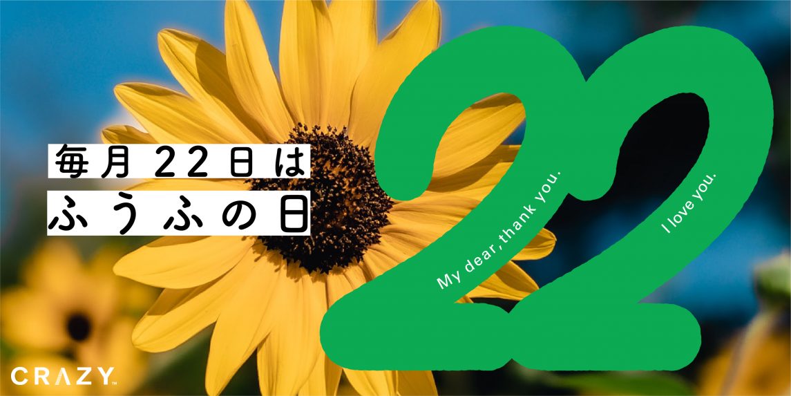 この #ふうふの日 がきっかけになって、何気なく過ぎていく日常の中にパートナーを想う時間が生まれたら素敵だなと願いながらCRAZY MAGAZINEでは、毎月22日に #ふうふの日 をお知らせします。