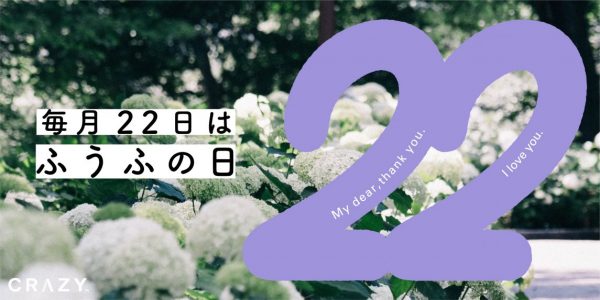 この #ふうふの日 がきっかけになって、何気なく過ぎていく日常の中にパートナーを想う時間が生まれたら素敵だなと願いながらCRAZY MAGAZINEでは、毎月22日に #ふうふの日 をお知らせします。