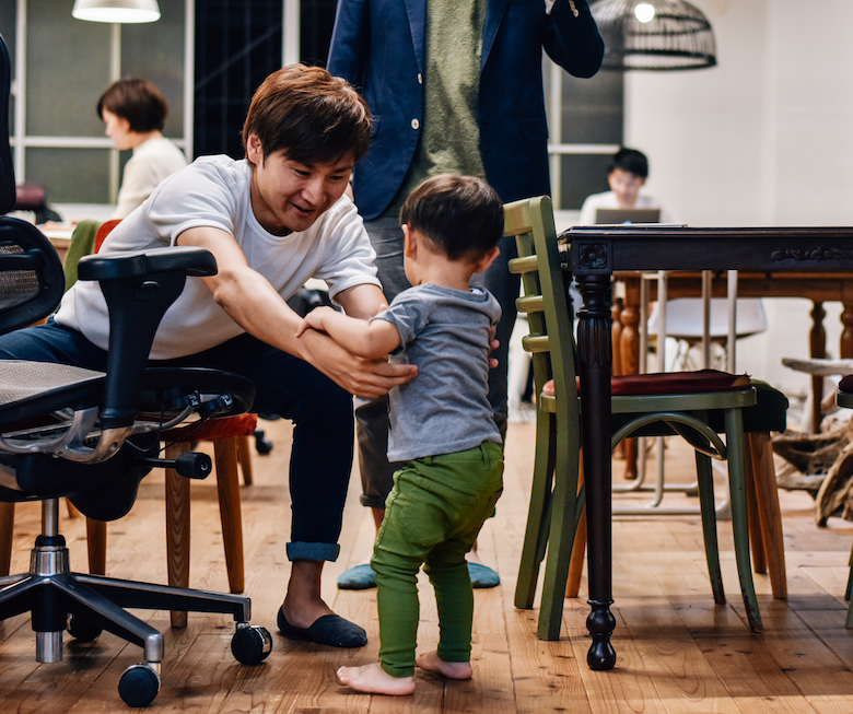 「抱っこしたり触れ合ったりしなければ、子供がどういうものかのイメージが持てないかもしれません。でも子供が寄ってきたら、子供に慣れていない男性社員でも『お、おう』と、ちょっと戸惑いながらも抱き上げます。そうやって子供が身近になっていくと、子育てに不安もなくなるし、街中で子育てしている人に優しくなれるかもしれないですよね」