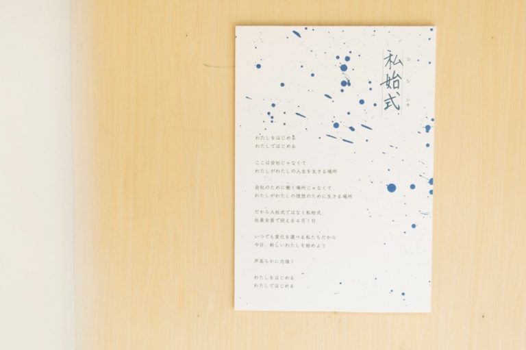 CRAZYの入社式を手がけることになった林さんは、CRAZYに入社する意味が伝わる入社式にしたいと考えた。タイトルは「私始式」。