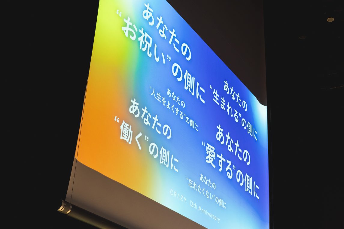 「2012年7月2日、CRAZYを創業しました。今日まで12年やってこれたのは、皆さんのおかげです。本当にありがとうございます」