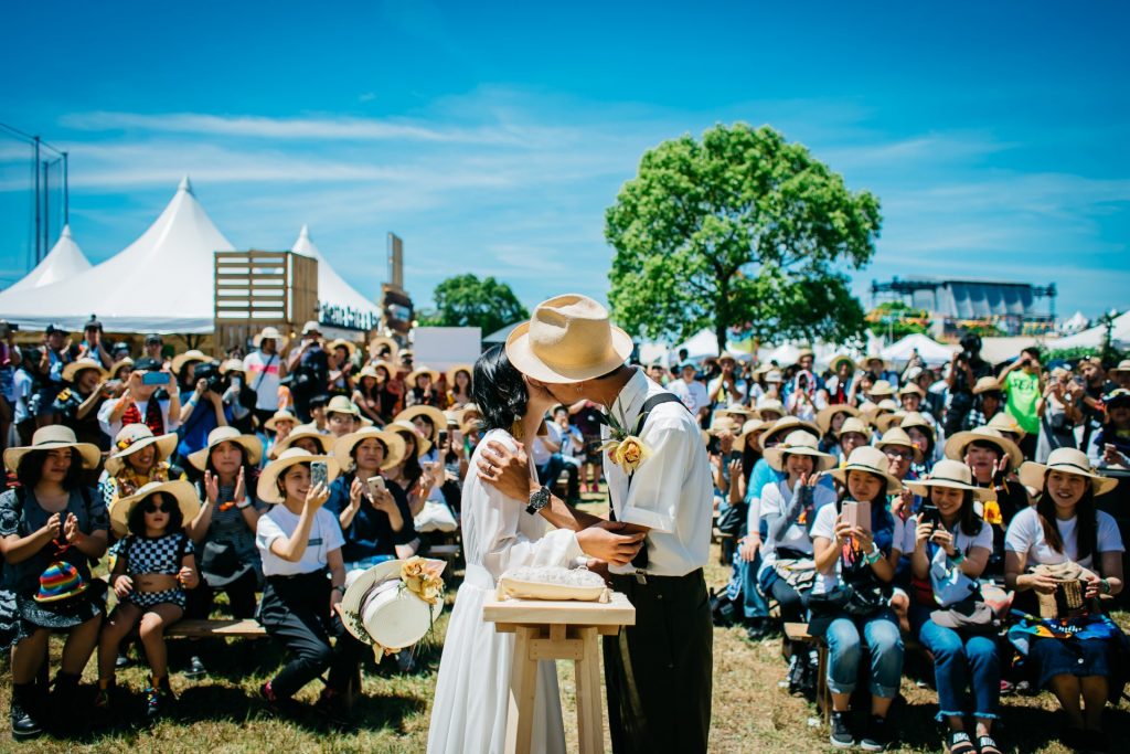 CRAZY WEDDINGで結婚式を挙げたお二人と結婚式の可能性を試す実験をしてみました。新郎新婦はフェスが趣味のお二人。当日は晴天にも恵まれ、DJが流す音楽をバックに挙式。突然のイベントだったにもかかわらず、お二人を祝福しようと300名以上のゲストが集まってくださいました!・・・(事例をさらに詳しく知る)