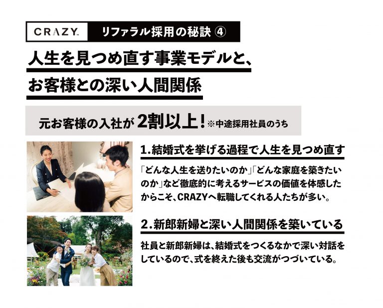 —中途採用の2割はCRAZY WEDDINGで式をあげたお客様とのことですが、どういうことでしょうか。