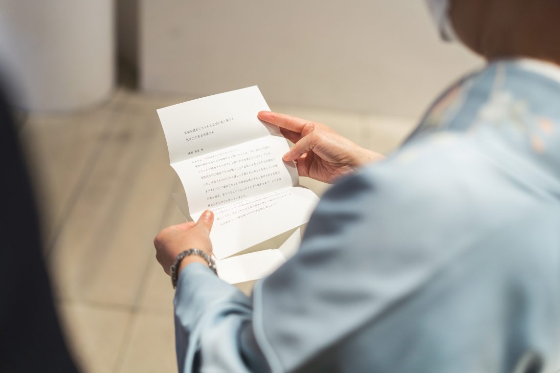 今回の結婚式では、「家族に“ふたり”を知ってほしい」、つまり、”ふたりでいるときのふたり”を知ってもらうことをテーマに掲げていました。家族とはもう何十年も一緒にいるけど、家族といるときは”家族に見せる自分”しか見せていませんでした。でも、本当はもっといろんな顔があるんですよね。そのひとつが、美由紀さんという大切な人と一緒にいるときの顔。最後にいただいた手紙を読んで、私たちの新たな一面を家族に届けられたんじゃないかと思えました。