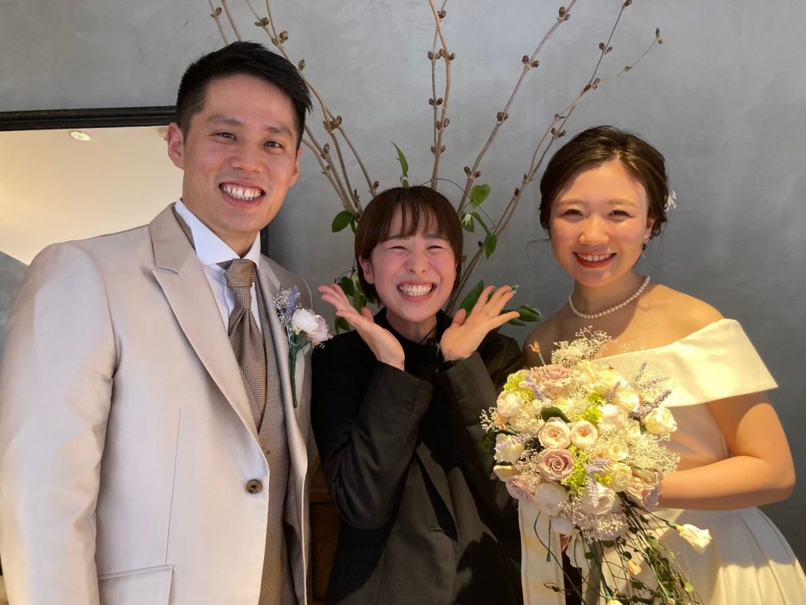実は、会場に着いてから結婚式で着る予定だったシャツを忘れたことに気がついて。添田さんに相談したら、私が準備をしている間に近くのドレスショップに駆け込んで新しいものを手配してくださり、本当に助かりました……。しょっぱなからそんなトラブルがあったので、「もうこれ以上焦ることはないだろう」と落ち着いて式に臨めましたね(笑)。