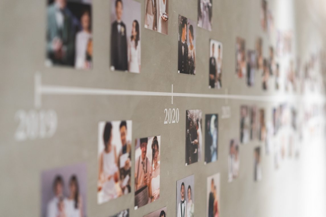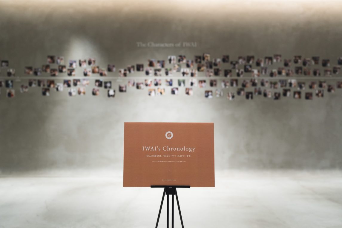 セレブレーションホールでは「IWAI’s Chronology(IWAI年表)」と題した展示を行いました。年表の中身は、イベントにご参加いただいた総勢150組のおふたりの写真。IWAIの歴史を共につくってくださった感謝を込めて企画いたしました。