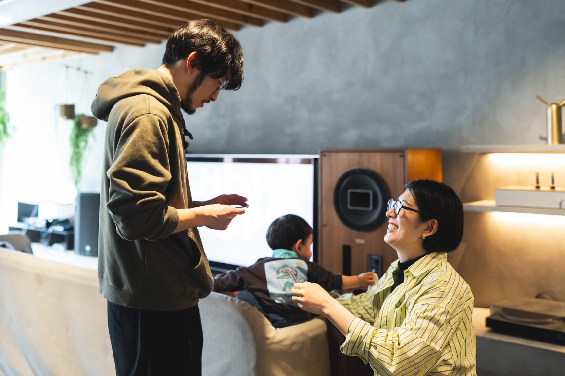 スタッフの声に導かれながら、ここまでのコンテンツを振り返り、結婚式から今日までの日々を想起するおふたり。緻密に設計された特別な音声と音楽が、自然と心を整えたり、その奥にある想いを引き出していきます。