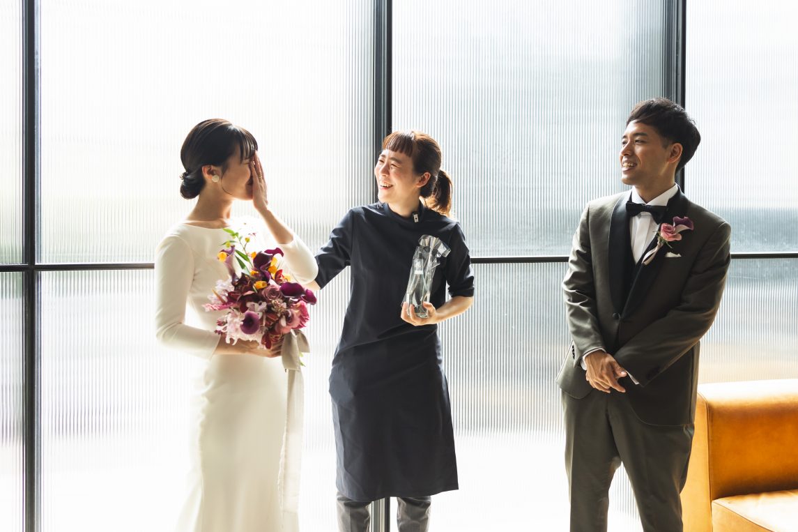 結婚式を挙げる前は、思うように大きな仕事を成せない自分に「自分が生きている意味ってあるんだろうか」と、少し心が塞ぎ込んでいたそうです。でも、結婚式をきっかけに、周りの人の愛情や“身の回りの人や小さな幸せを大切にしたい”という自分の本当の価値観に気づけた、と。大袈裟ではなく、人生観までもが変わったと伝えてくれました。「私が結婚式を通じて届けたかったものが、ちゃんとお客さまに届いている」と分かって、すごく嬉しかったです。