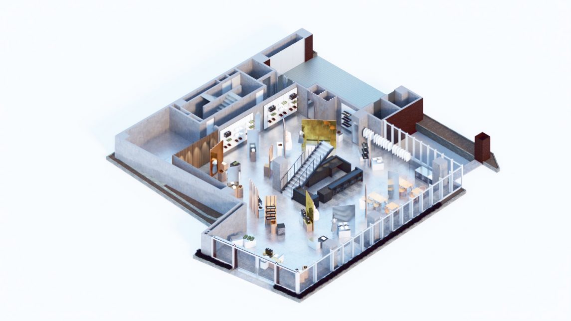建築の図面から得た発想と、イギリス文化の翻訳という観点から、来館者やお店自体が、自ら何かを表現し発信できる劇場としてつくろうと、「PLAYHOUSE」というコンセプトが決まりました。