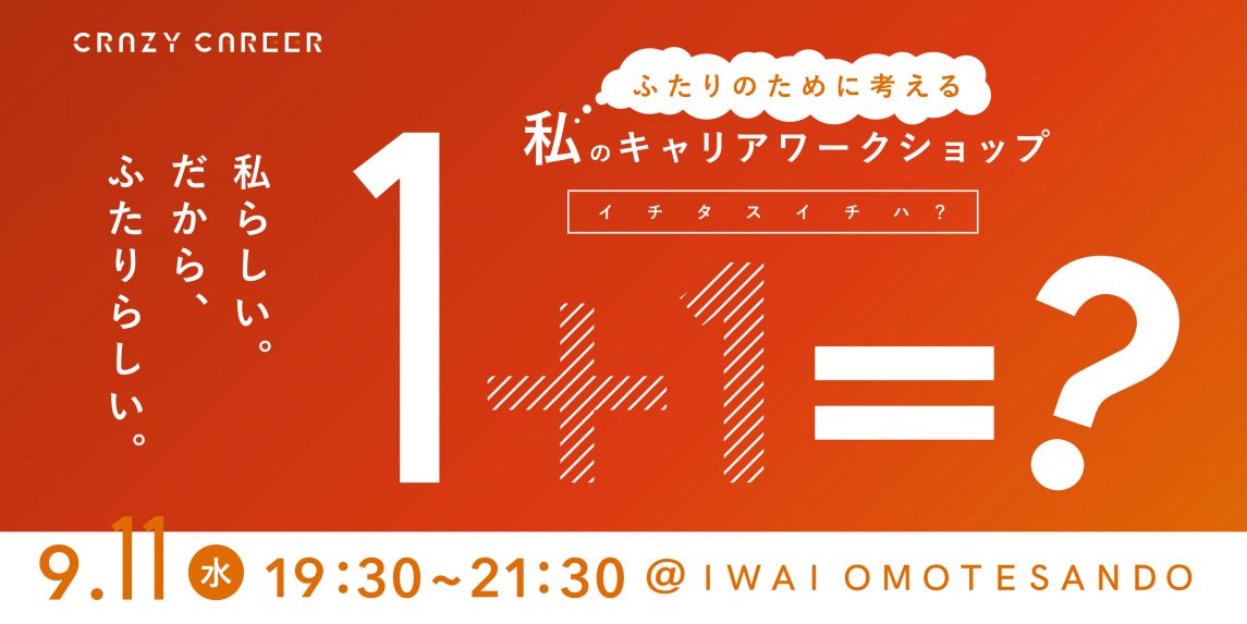 【9月11日(水)開催】パートナーとの人生も、理想のキャリアも諦めたくないあなたへ。キャリアワークショップ「1+1=(イチタスイチハ)」 | NEWS | 株式会社CRAZY(株式会社クレイジー) | CRAZY,Inc.