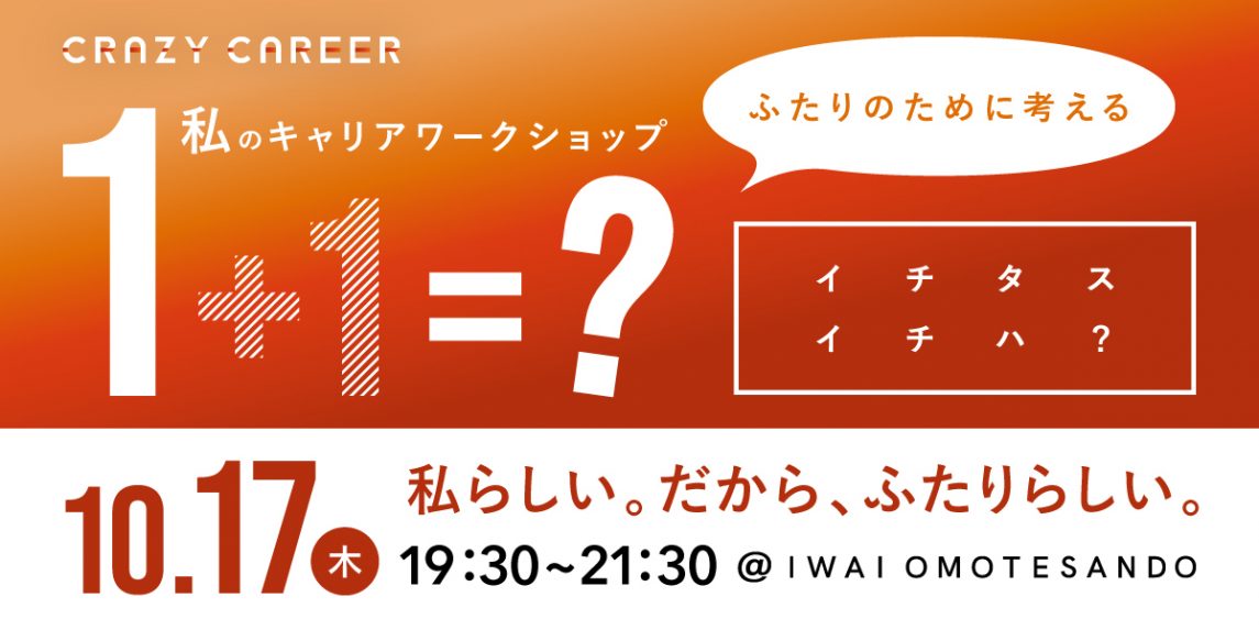 10月17日(木)、「IWAI OMOTESANDO(以下、IWAI)」にて、キャリアワークショップ「1+1=(イチタスイチハ)」を開催いたします。
