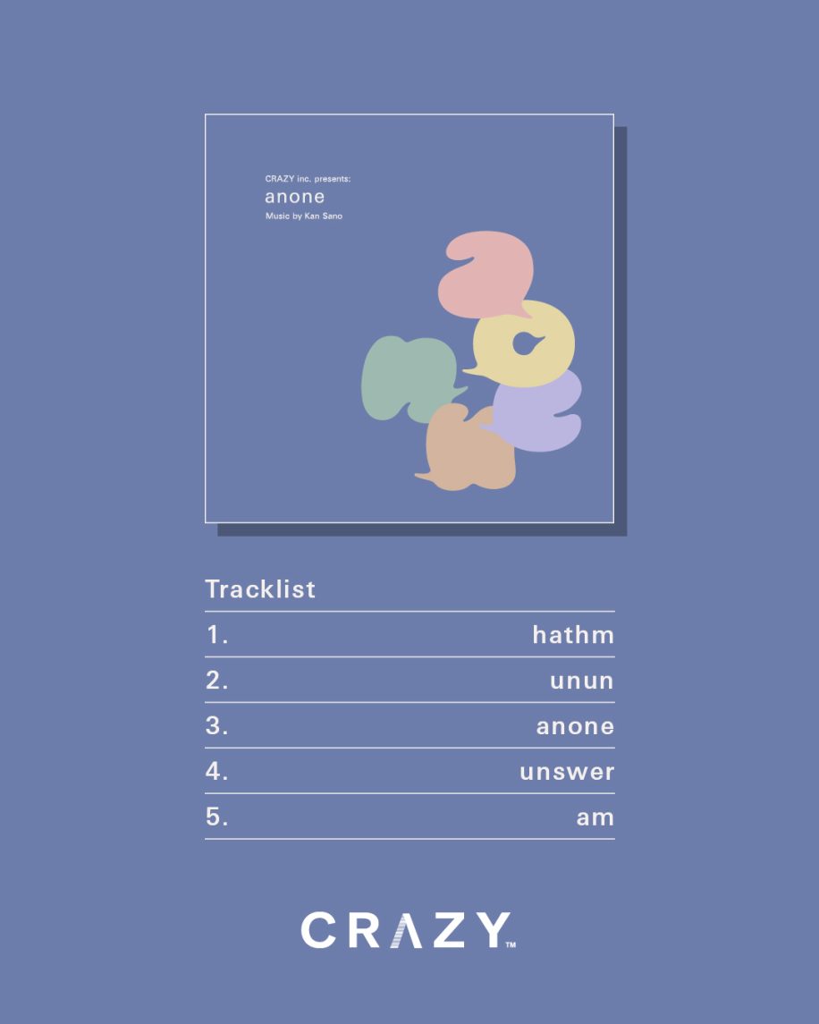 2025年6月26日(木)、CRAZY初のオリジナルサウンド『anone』の配信を開始しました。アーティストKan Sano氏が制作を手がけた、対話のための5つの楽曲をお届けします。