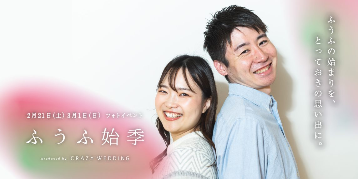 今回は、2025年11月〜2026年6月にふうふ生活を始めるおふたりを対象に、kuppographyのフォトグラファーによるポートレート撮影やCRAZY WEDDINGによるオリジナルのお祝いコンテンツをお届けします。