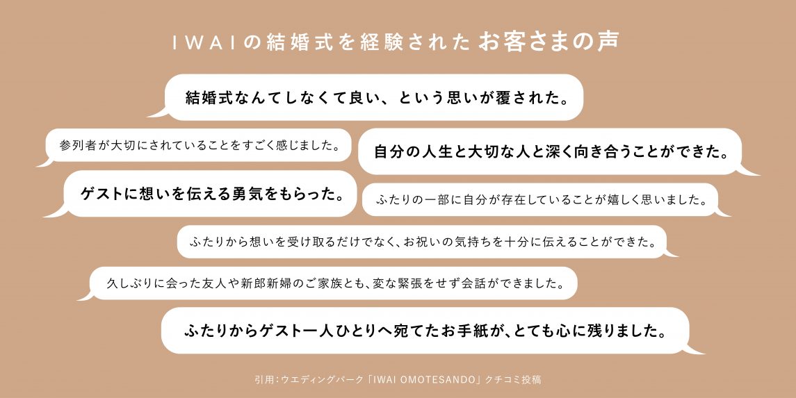 今後も、お客さまの声と真摯に向き合いながら、人と人とがつながる機会を届けてまいります。これからもIWAIをどうぞよろしくお願いいたします。