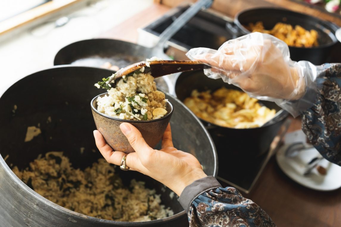 各回、IWAIのプロデューサーが、自身の担当したお客様をご招待。IWAIの釜飯やお酒とともに、お互いの近況報告や結婚式当日の思い出話、お客様同士の出会いを楽しんでいただける、OBOG様限定のイベント「おかえり酒場IWAI」。