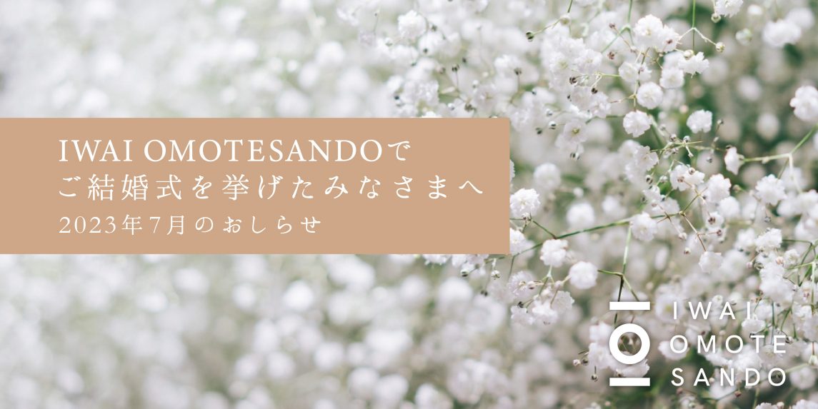 本NEWSでは、IWAI OMOTESANDOで結婚式を挙げてくださったOBOGの皆さまへ、IWAIからのご案内をお届けいたします。