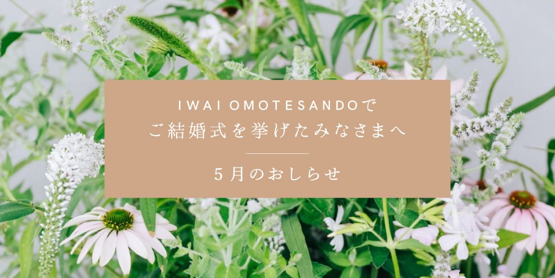 本NEWSでは、IWAI OMOTESANDO(以下、IWAI)で結婚式を挙げてくださったOBOGの皆さまへ、IWAIからのご案内をお届けいたします。