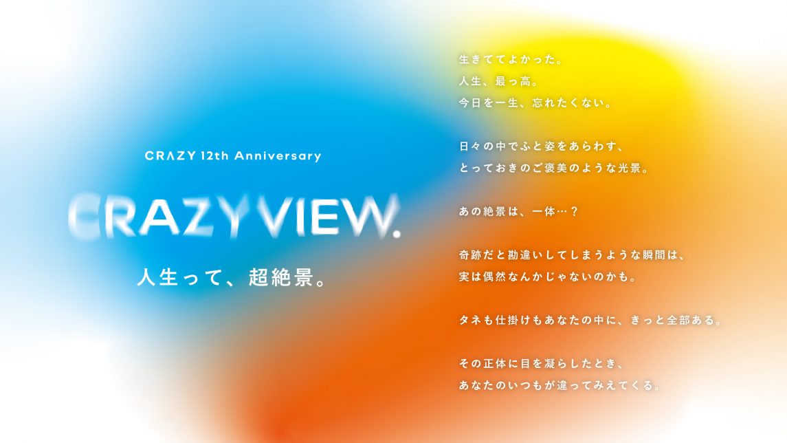 「生きててよかった」「人生、最っ高」「今日を、一生忘れたくない」人生に訪れる奇跡のような瞬間を“すべてを奪うほどの景色” そんな意味を込めて、「CRAZYVIEW.」と呼ぶことにしました。