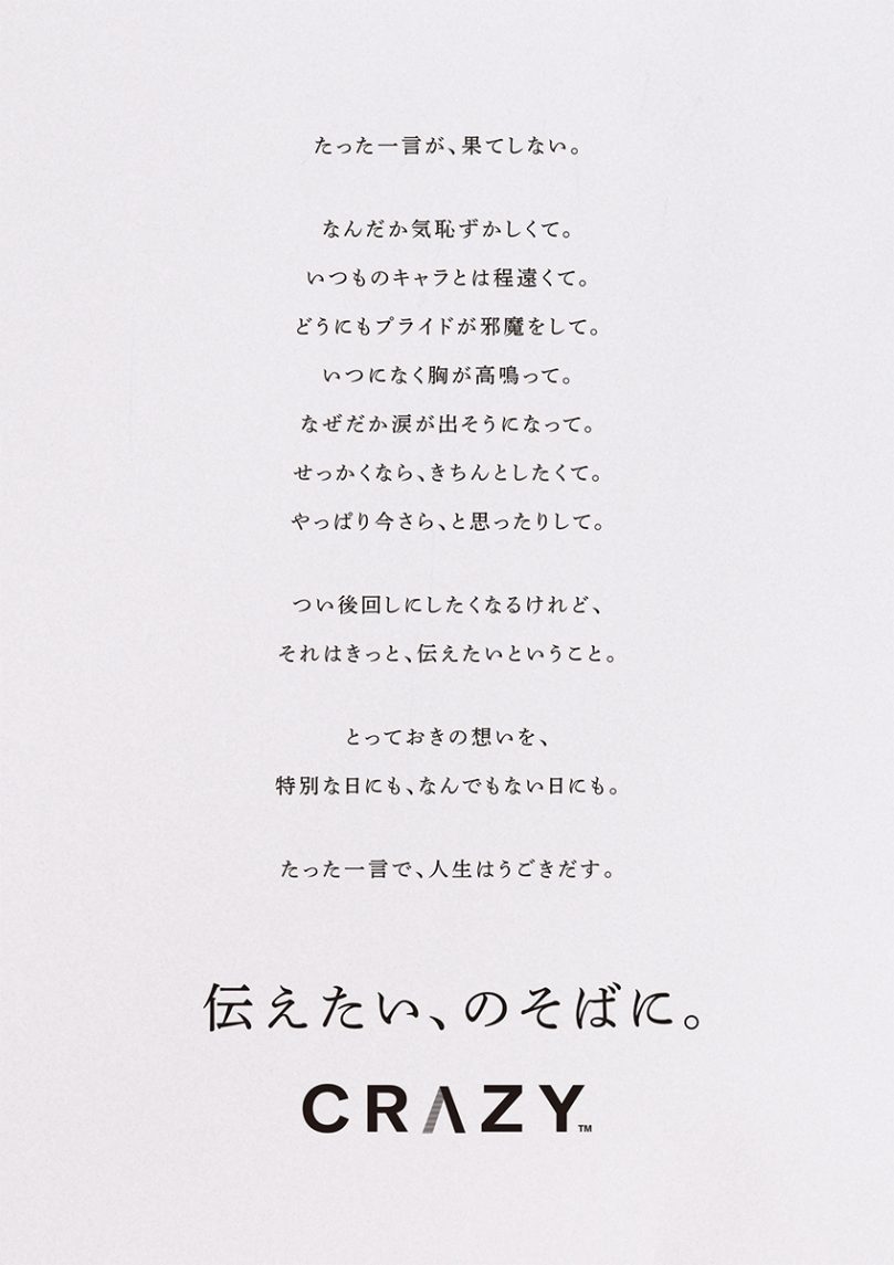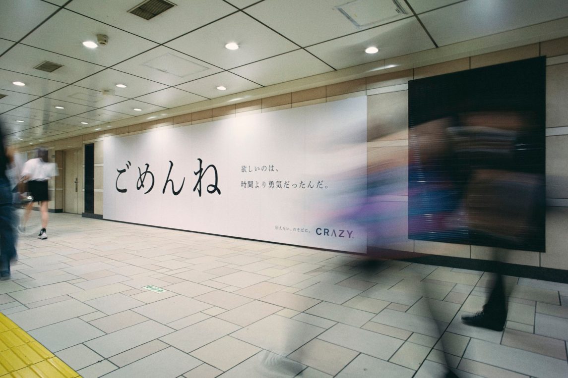 7月22日から28日までの期間、表参道駅に「大切な人に伝える勇気」をテーマにしたCRAZYの広告を掲出しました。