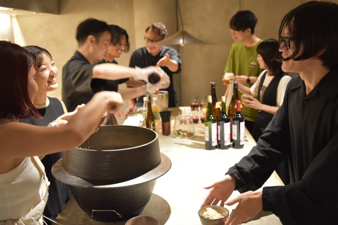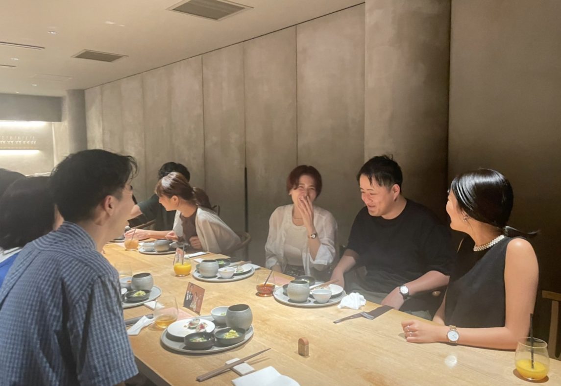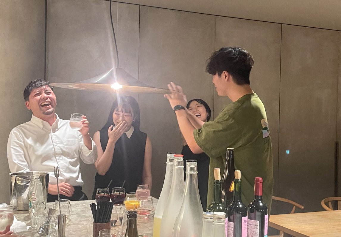 IWAIのお料理やお酒とともに、近況報告や結婚式の思い出話、お客さま同士の出会いを楽しんでいただけるOBOG様限定のイベント「おかえり酒場 IWAI」。各回、IWAIのプロデューサーが、自身の担当したお客さまをご招待しています。