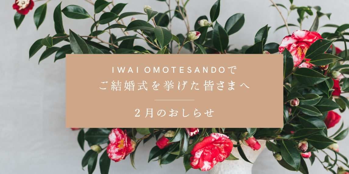 本NEWSでは、IWAI OMOTESANDOで結婚式を挙げてくださったOBOGの皆さまへ、IWAI OMOTESANDOからのご案内をお届けいたします。