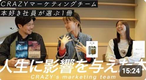 CRAZYのことをもっと多くの方に知ってもらいたいマーケティングチームのメンバーがさまざまな企画にチャレンジしています!先月掲載したOBOGさまのルームツアー動画以外にも、メンバーのファッションやおすすめの本などをご紹介しています^^