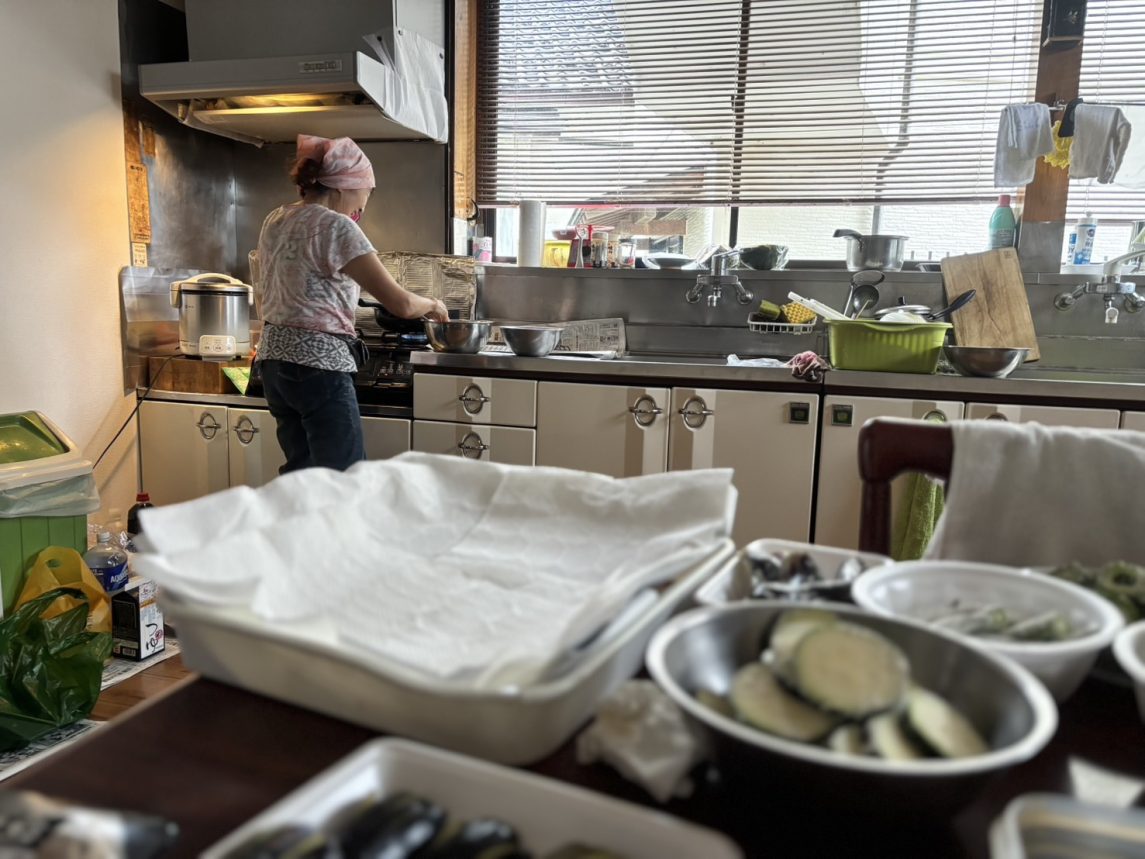 観光よりも、その土地の人と暮らしを共にしてみたいという想いから、ゲストハウスのスタッフの方と共に農業をお手伝い、その晩農家さんの家で食卓を囲み、蕎麦打ちも体験させてもらいました。集落全体がまるでひとつの家族のようで、故郷を思い出す温かさを感じました。