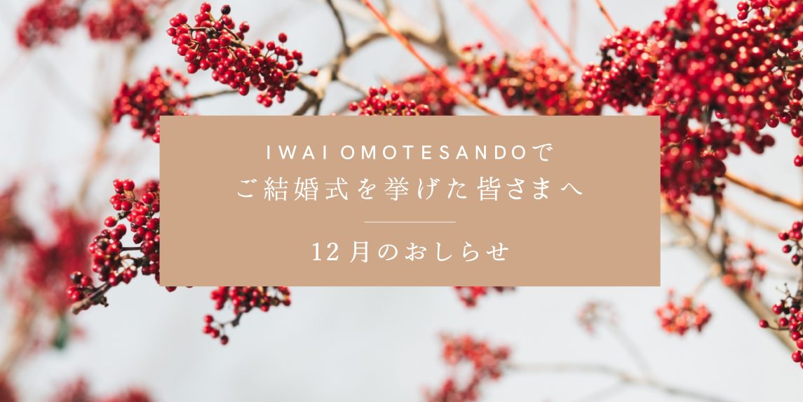 IWAI OMOTESANDOでご結婚式を挙げた皆さまへ 〜2025年12月のおしらせ〜