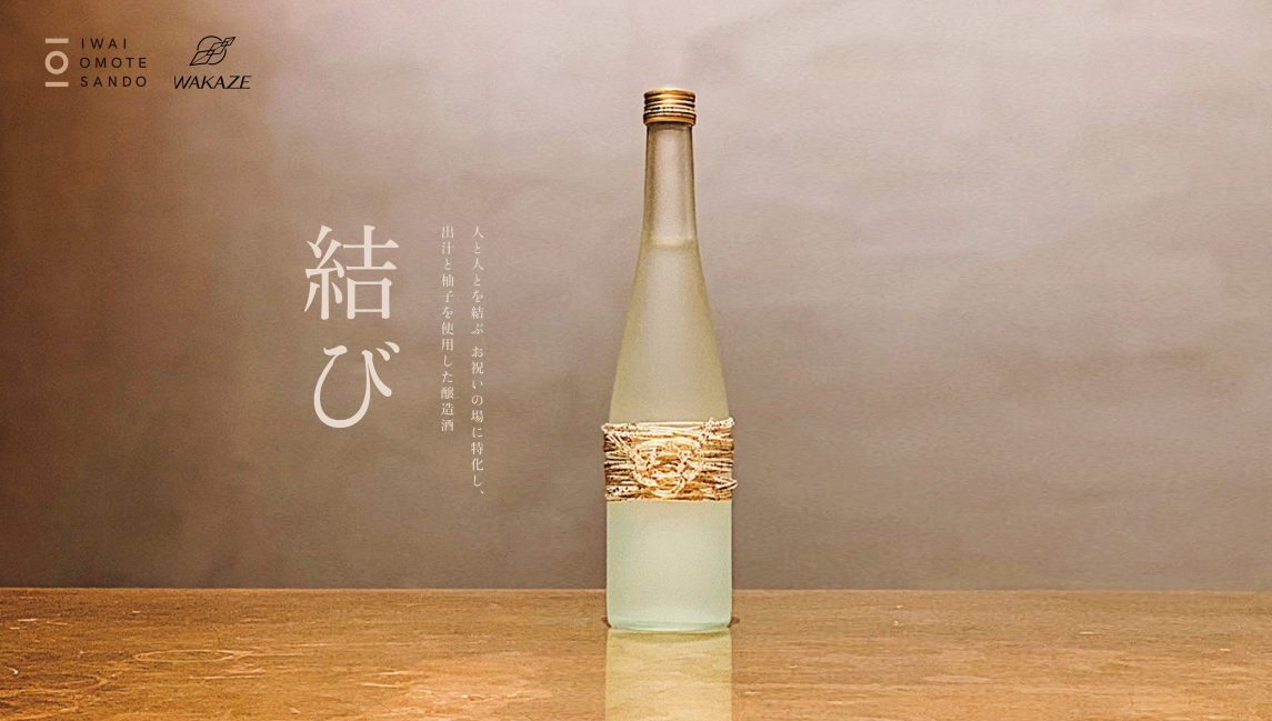 「IWAI OMOTESANDO」ではお祝いの場に集う人たちがその後も繋がり続けることを願い、“同じ釜の飯を食う”ということわざになぞらえて、締めに釜飯を提供しています。「結び」は、釜飯とマリアージュさせることでより本来の美味しさが引き立つよう、醸造過程で「IWAI OMOTESANDO」の釜飯と同じ昆布と鰹節の合わせ出汁、そして柚子を加えました。