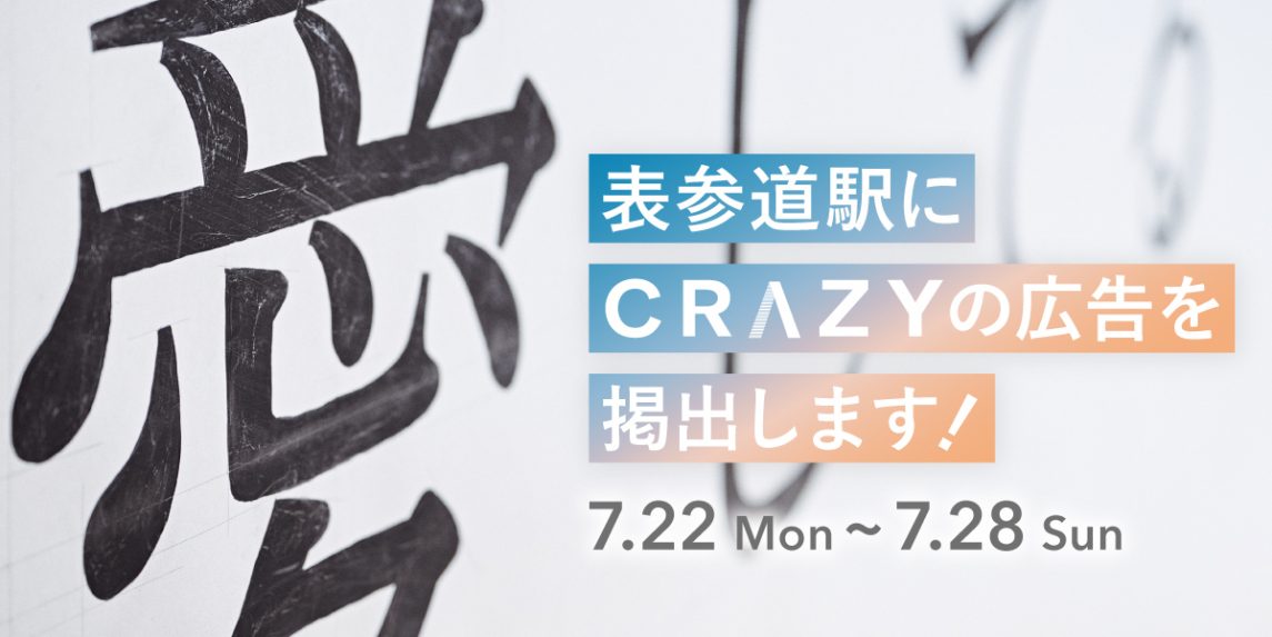 7月22日(月)から7月28日(日)の期間、東京メトロ表参道駅にて「伝える勇気」をテーマにした交通広告を掲出しております。創業12周年を迎えた今月、より多くの方にCRAZYを知っていただく機会になればという想いで制作いたしました。