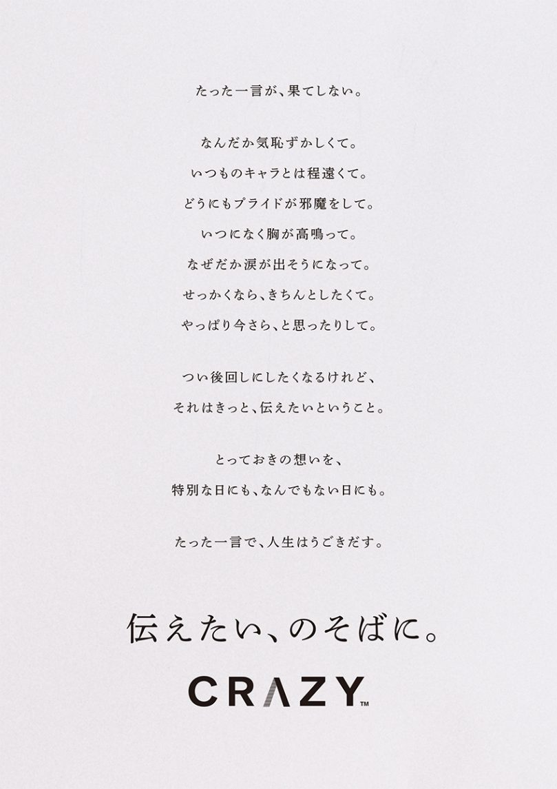 あたりまえの特別さを感じた今だからこそ、特別な日でも、日常でも、大切な想いを伝えたい気持ちのそばにいたいというメッセージを広告に込めました。このメッセージが、一人でも多くの方の伝える勇気になるよう願っています。