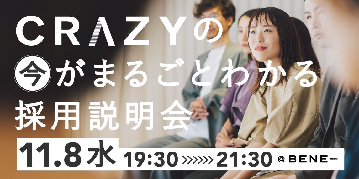 【11月8日(水)開催】CRAZYの“今”がまるごとわかる採用説明会 | NEWS | 株式会社CRAZY(株式会社クレイジー) | CRAZY,Inc.