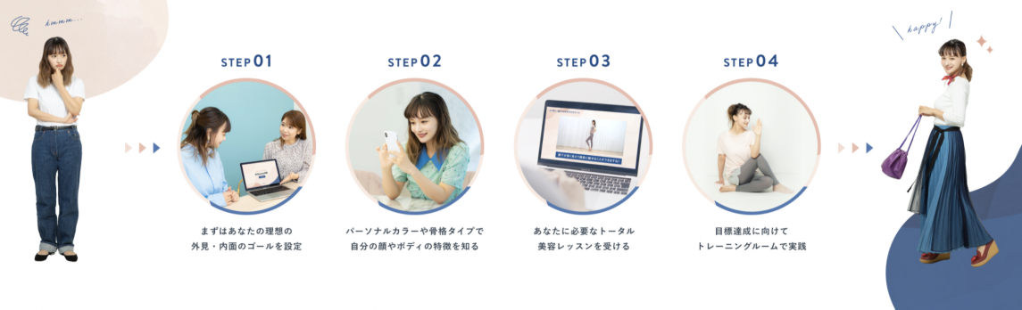 SHEbeautyは自分らしい美しさを一緒に見つけ、実現していくトータル美容プロデュースサービスです。なりたい自分の理想像をコーチと一緒に明確化し、各分野のプロ講師によるレッスンと実践イベントを通して、 肌やボディ、ファッションまでトータルでのビフォーアフターを目指します。