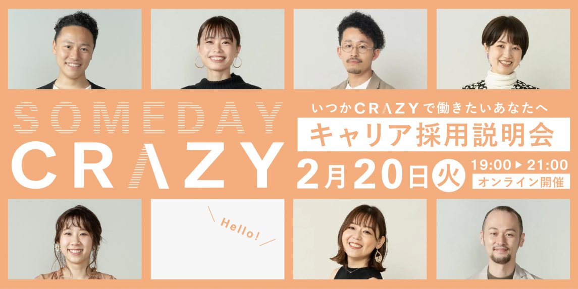 【2月20日(火)開催】SOMEDAY CRAZY 〜キャリア採用説明会〜 | NEWS | 株式会社CRAZY(株式会社クレイジー) | CRAZY,Inc.