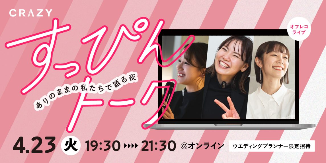 4月23日(火)、現役ウエディングプランナーの方に向けたオフレコライブ「すっぴんトーク 〜ありのままの私たちで語る夜〜」をオンラインにて開催いたします。