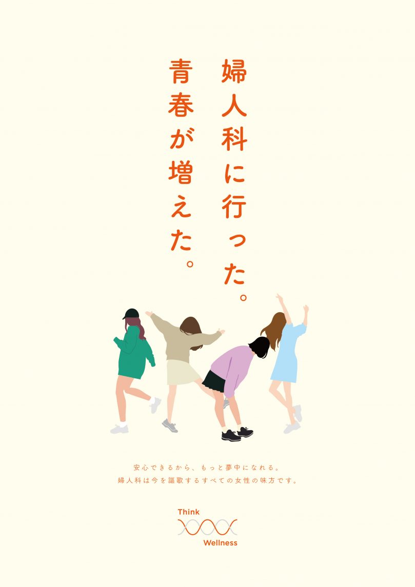 欧米では若くから婦人科のかかりつけ医を持つことが一般的なのに対し、日本では婦人科=出産・妊娠のイメージが強く、受診のハードルがあります。そこで、婦人科に行くことで自分たちの毎日にどんな良いことがあるのかをポジティブに伝え、若くから婦人科を自分ごとに捉えられる表現を目指しました。(青春に年齢制限はないと考えているので、人生を謳歌する全ての女性への応援メッセージになっていたら本望です。)