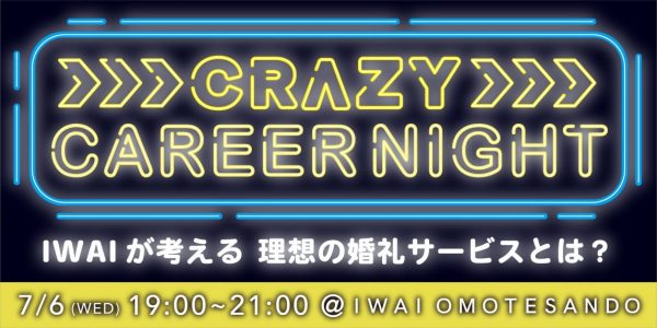 【7月6日(水)開催】CRAZY CAREER NIGHT Vol.1 〜 IWAIが考える、理想の婚礼サービスとは?〜