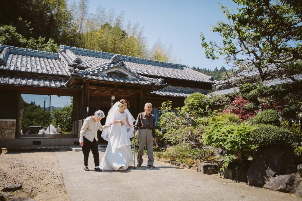 新婦のおじいちゃんおばあちゃんと一緒に、新婦の実家からはじまるバージンロードには、