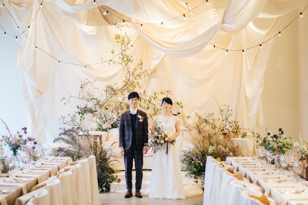 空間は、ゲストの皆様に二人の”it”の世界観に入り込んでもらえるように、真っ白な布に包まれた空間にしました。大切な恩師からメッセージを伝えてもらったり、二人が一緒にジャズの生演奏をしたり、全員と手紙の交換をしたり。心が震えるような言葉にならない感覚を創り出すことを意識し、デザインだけでなく体感としても心に残る、かけがえのない一日となりました。